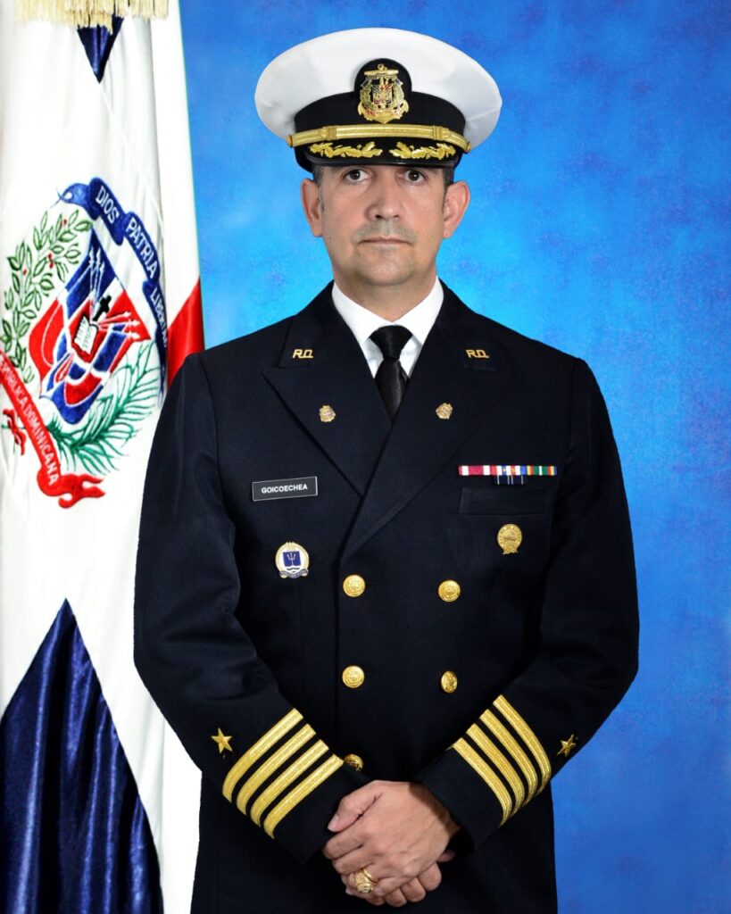 El Capitán de Navío Hugo Goicoechea Franco, ARD., ingresó a las Fuerzas Armadas Dominicanas en septiembre de 1993. En junio de 1997, se reportó como guardiamarina en la Academia de la Guardia Costera de los Estados Unidos en New London, Connecticut, donde cursó una exigente jornada académica de cuatro años, culminando el 23 de mayo de 2001 con la obtención de una Licenciatura en Ciencias en Investigación de Operaciones y Análisis de Datos, convirtiéndose en el primer oficial dominicano en alcanzar este logro en dicha academia naval.